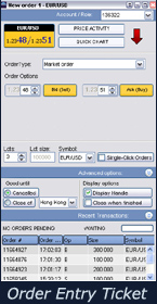 Quick and speedy trading with only two clicks directly from the charting interface. �